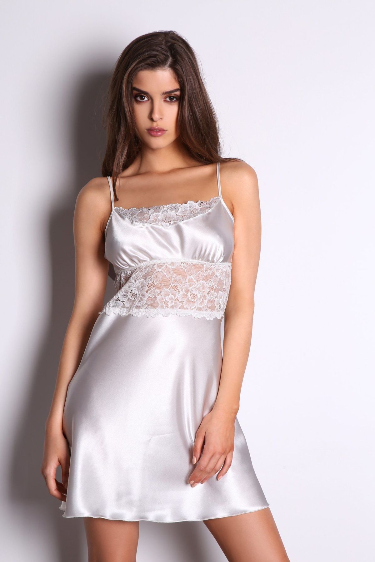 Νυχτικάκι από πολυτελές σατέν ύφασμα με ρυθμιζόμενες τιράντες. Σετ με ασορτί string.