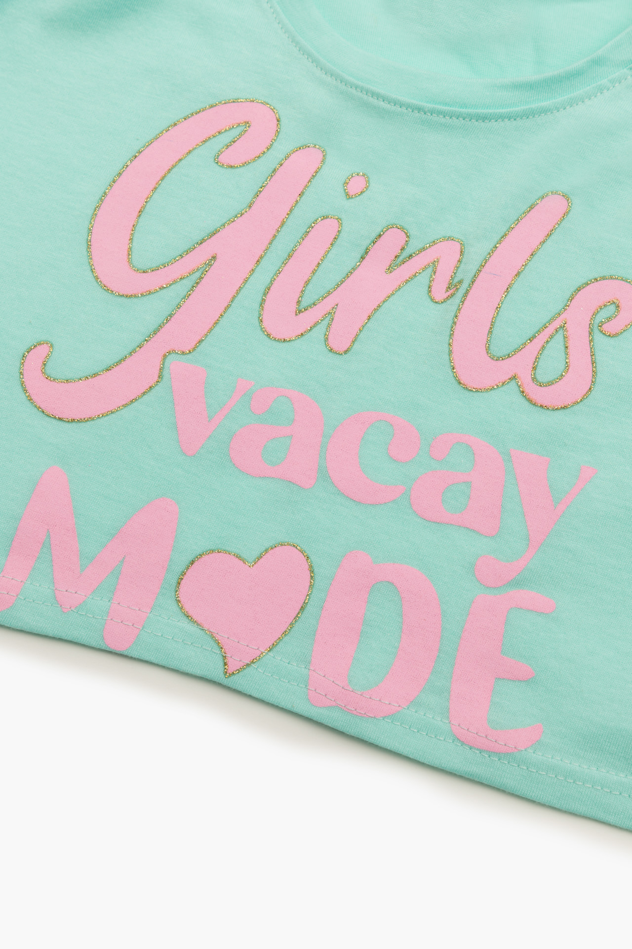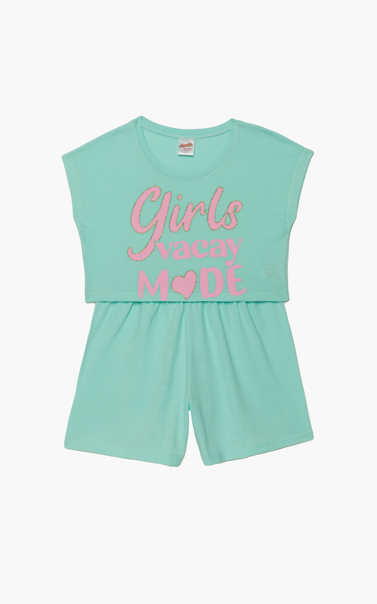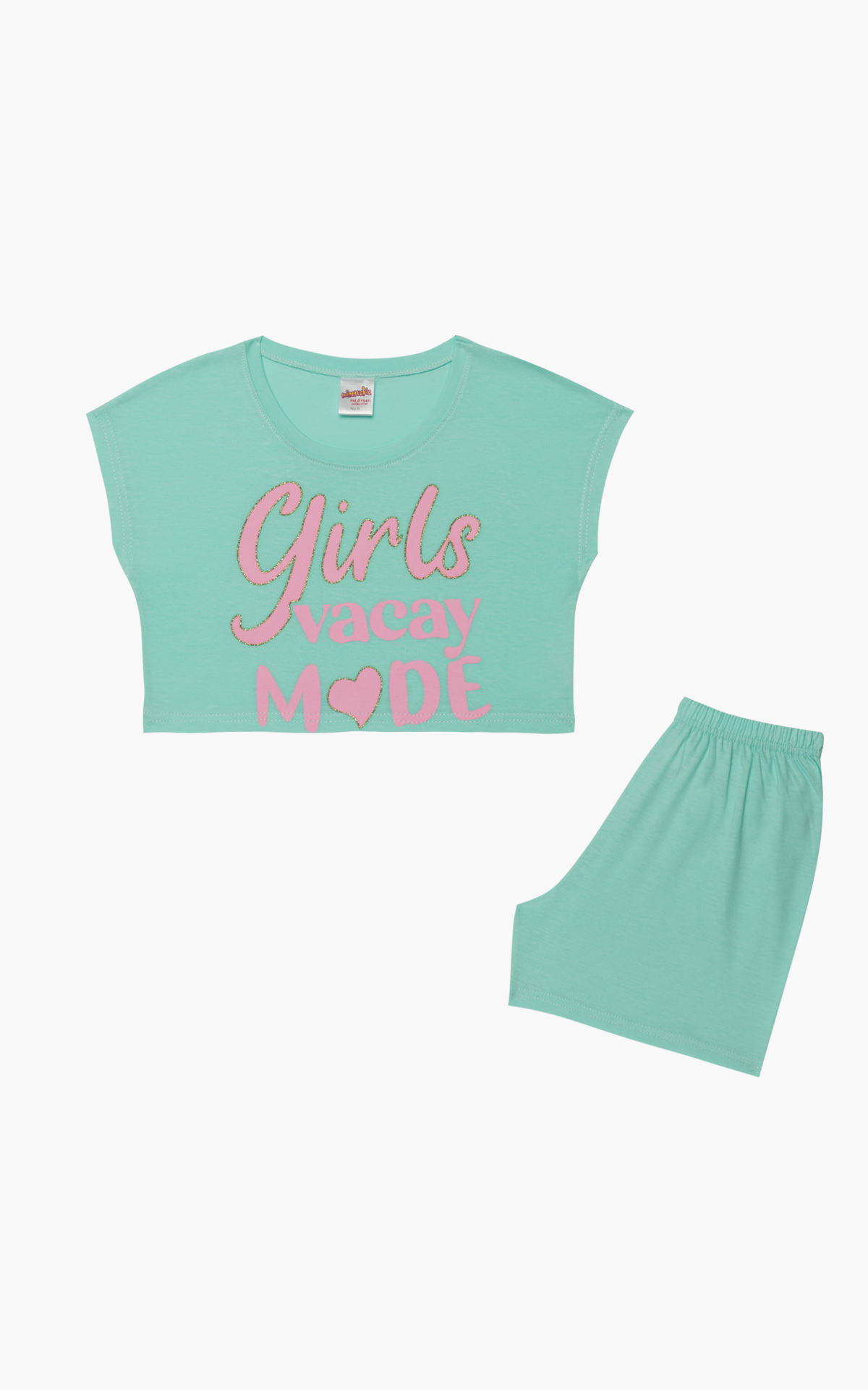 Παιδική θερινή πιτζάμα για κορίτσια από 100% βαμβακερό ύφασμα υψηλής ποιότητας. Το σετ περιλαμβάνει κοντομάνικο κροπ μπλουζάκι και σορτς.