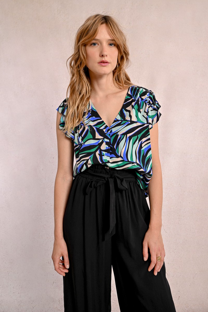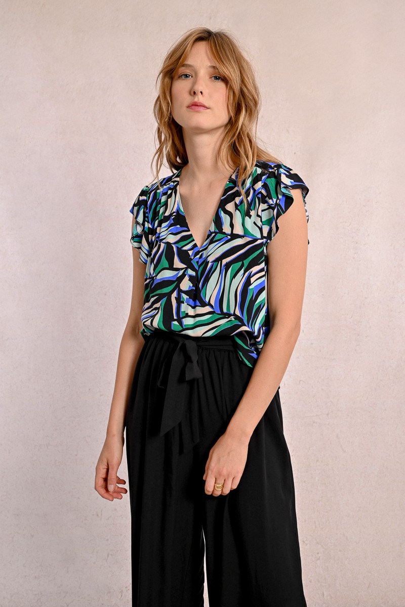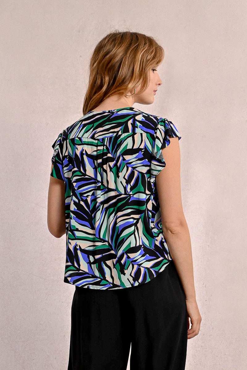 Molly Bracken Εμπριμέ Μπλούζα με βολάν στο μανίκι P1784DP
