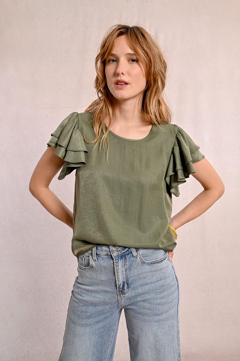 -Κοντό μανίκι με βολάν