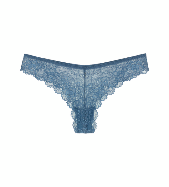 Δαντελένιο γυναικείο εσώρουχο Brazilian string με ελαστική, floral, επίπεδη δαντέλα.