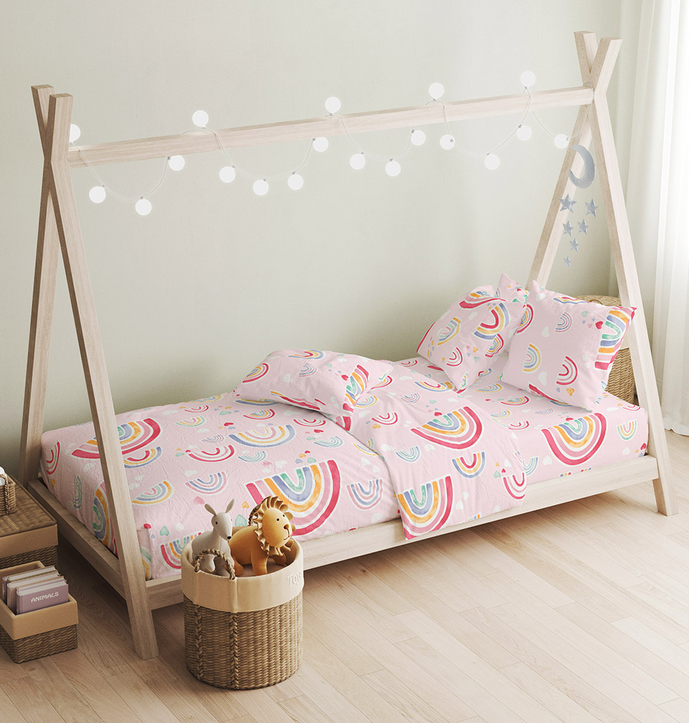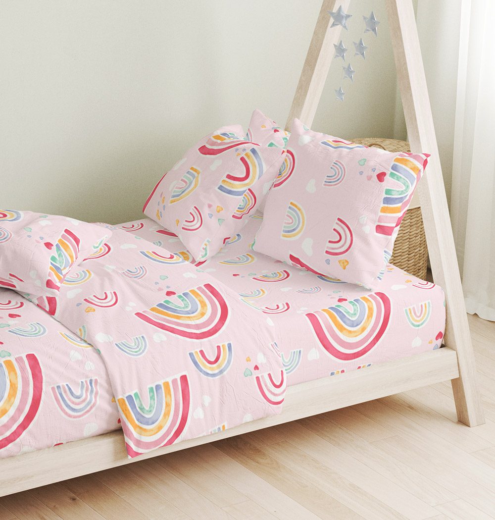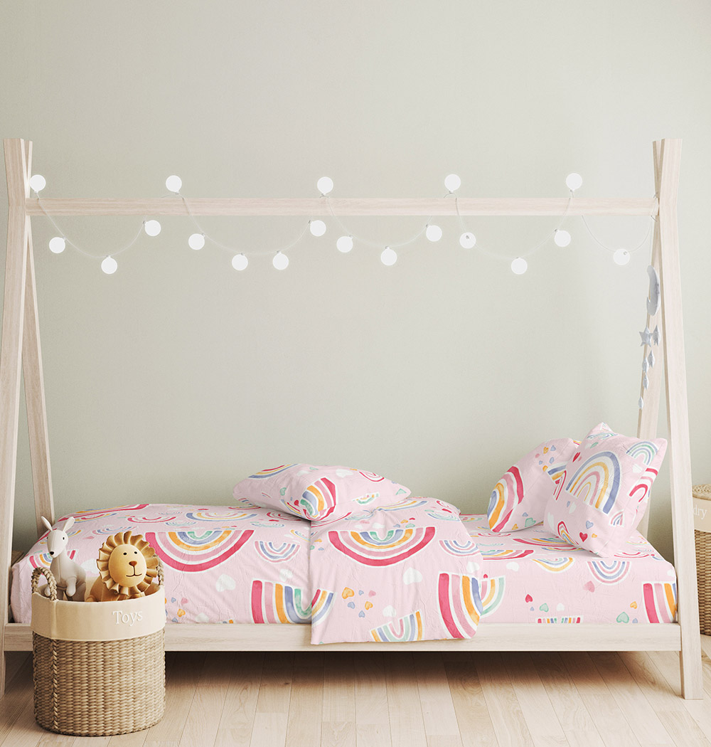 Who wouldn’t want to hug a rainbow? It has so many stories to tell from magical and distant places. With the Rainbow Cotton Bed Sheets Set, the bright and warm colors of the rainbow will flood the children’s room. Hypoallergenic, soft, and rich in cotton with excellent quality yarns. Give children a sleep full of health and rest