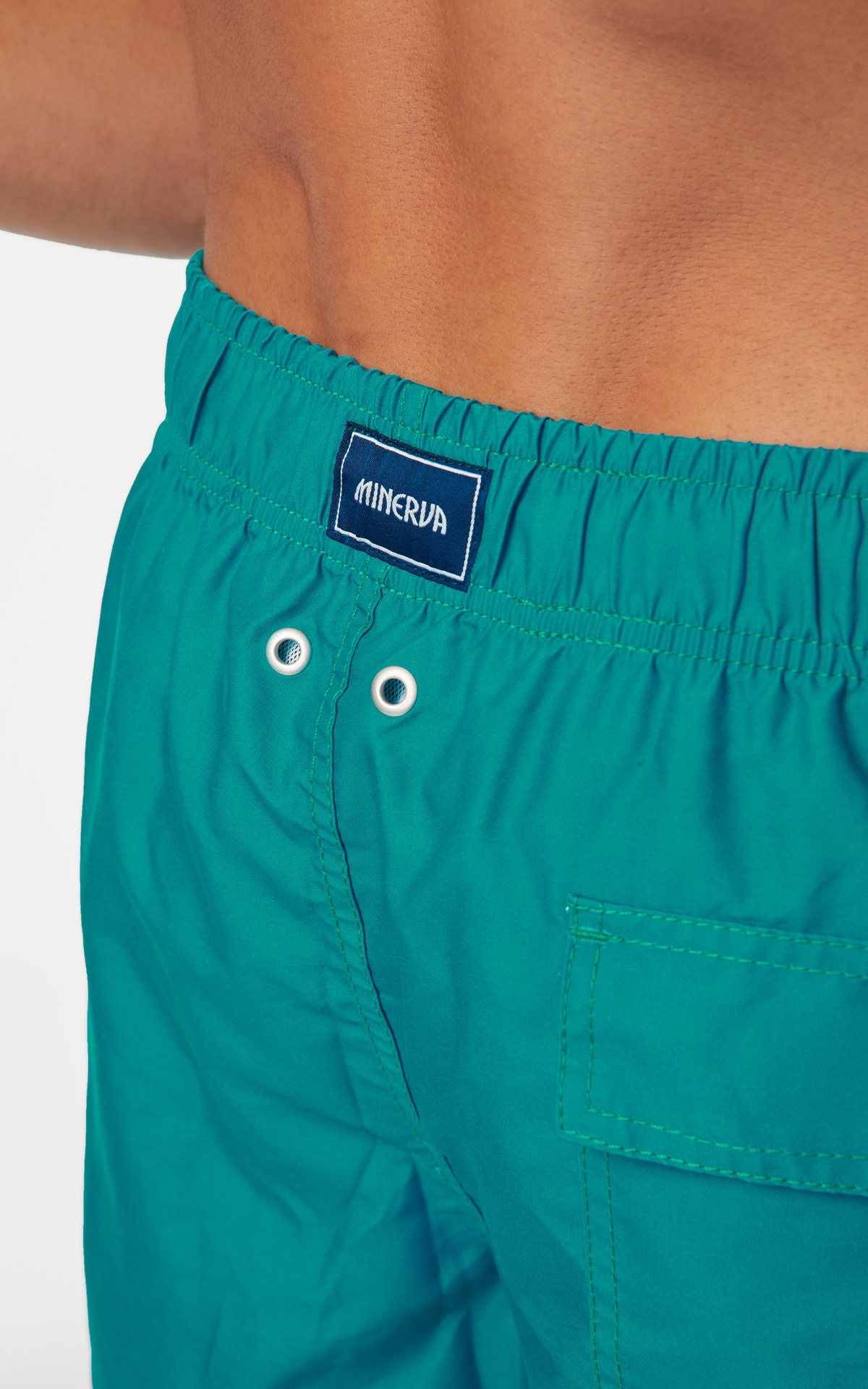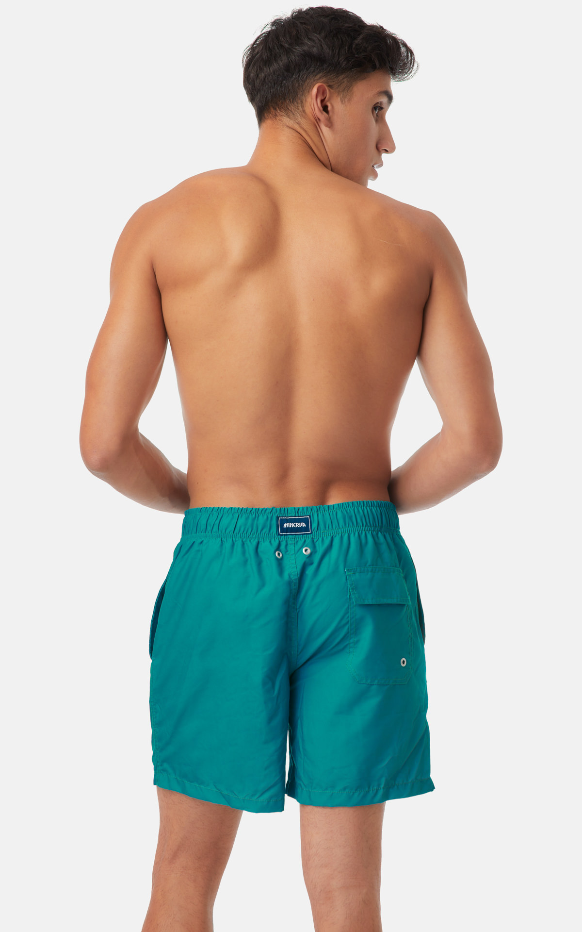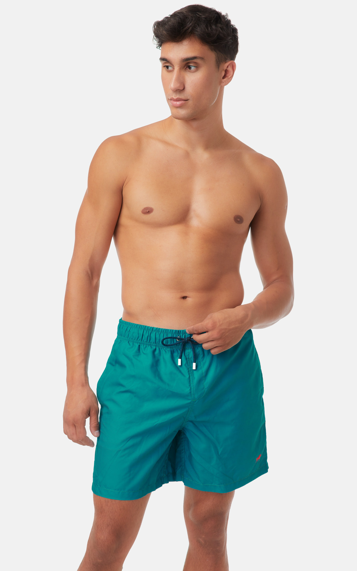 One-color Men’s Swimwear Shorts made of quick drying fabric, with logo embroidered on the front.