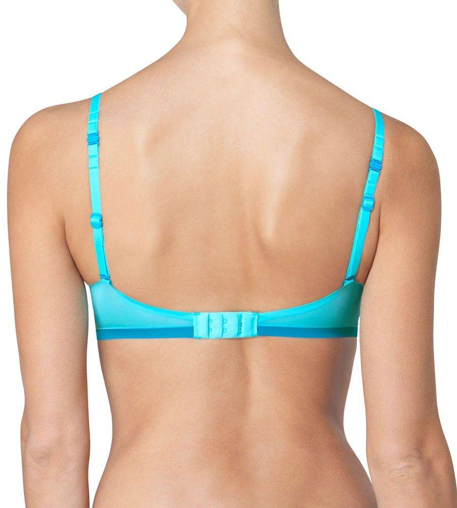 The bras have a soft, inner lining on the cups and flat ends so that they do not show.