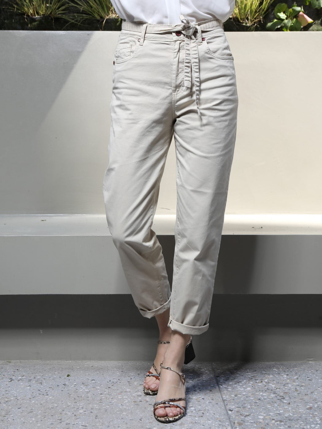 • Women’s pants in MOM FIT fit and belt, composition 97% cot – 3% lyc.